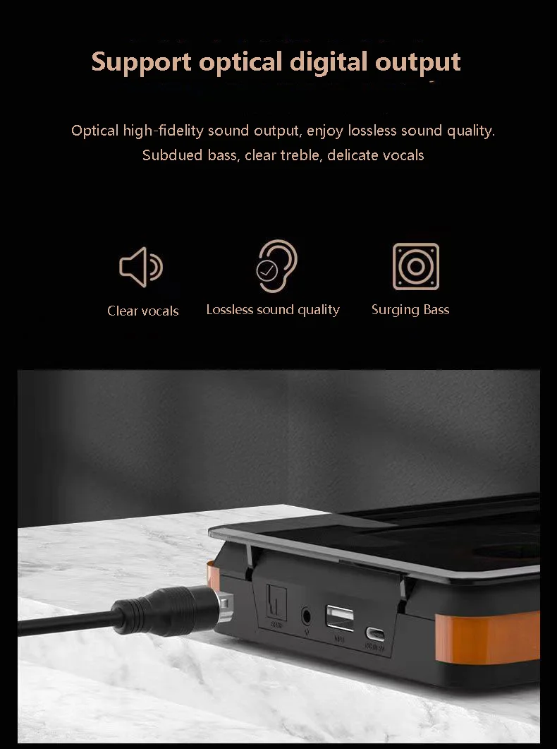 Support:Bluetooth connection, USB, Type-C, optical fibre, 3.5mm headphone output