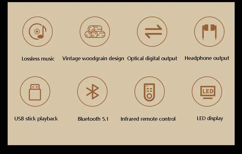 7: Adopt vintage wood appearance process, elegant and atmospheric shape, can effectively reduce bad resonance, get more pure sound quality.