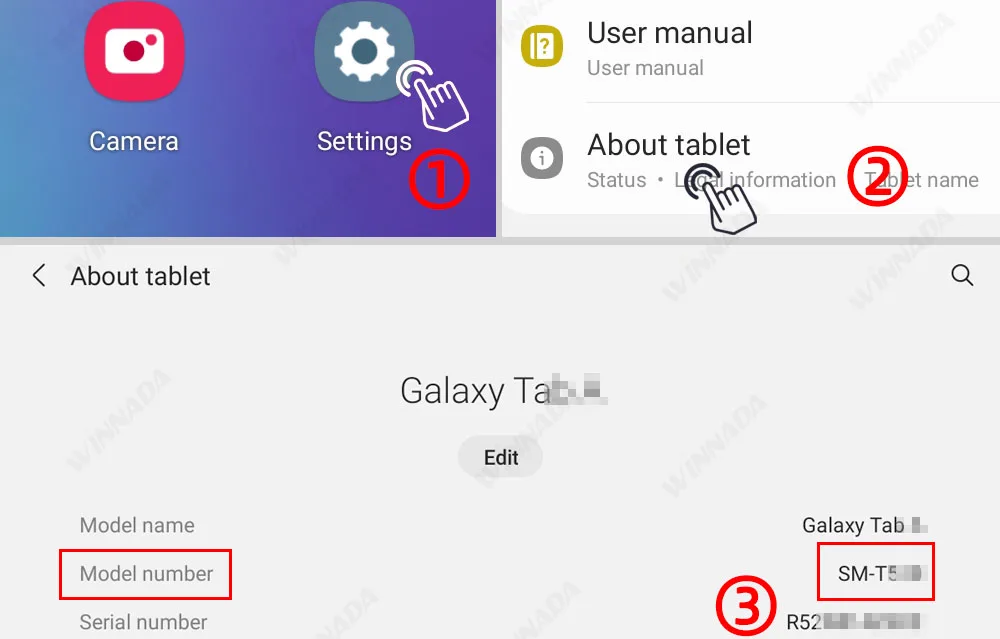 Open Settings. Look for the model number in About tablet. ( for example, SM-T***).