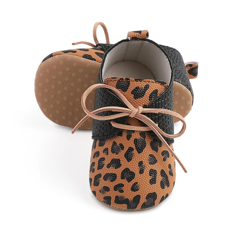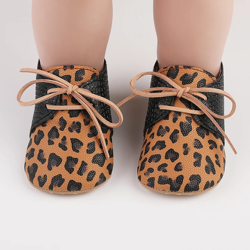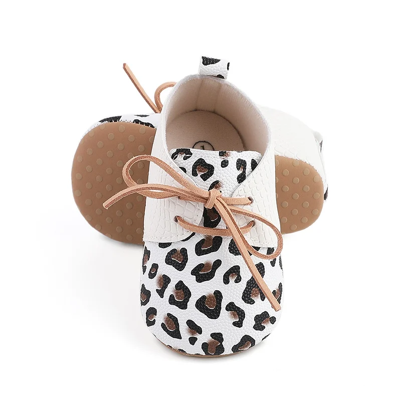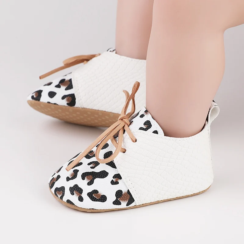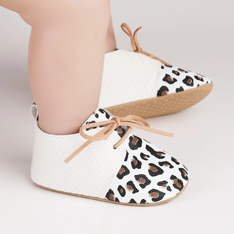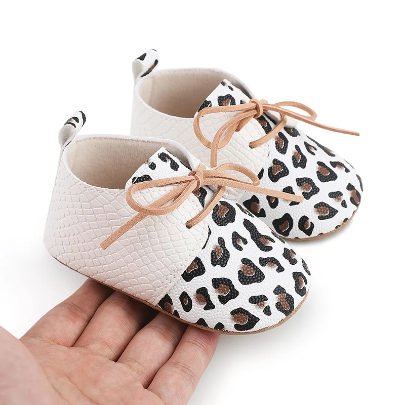 Color: WHITE, Shoe Size: 0 - Toddler Soft Bottom Non-Slip First Walkers Baby Boys Girl Solid Leather Shoes Newborn Retro Leopard Print Bowknot Design Sneaker