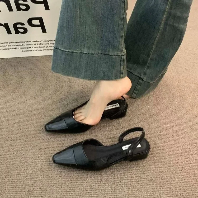 Color: WHITE, Shoe Size: 37 - 24Low Heel Baotou Sandals Women's French Nude Color Pointed Small Fragrant Style Ladies Thick Heels Back Air Style Single Shoes