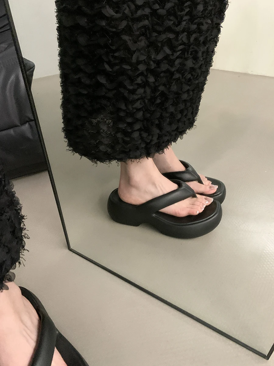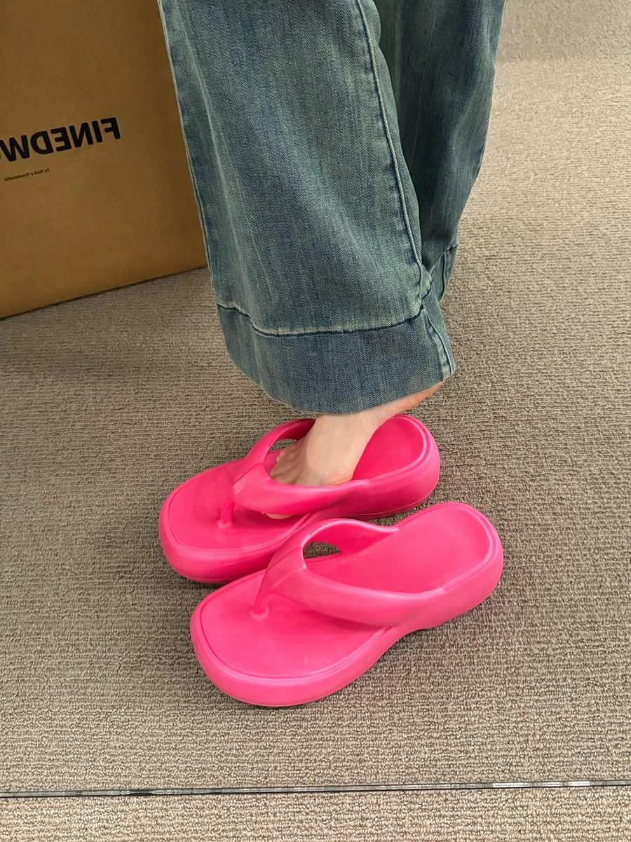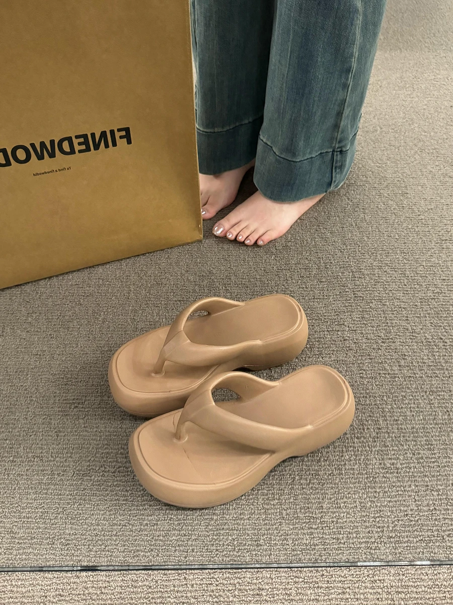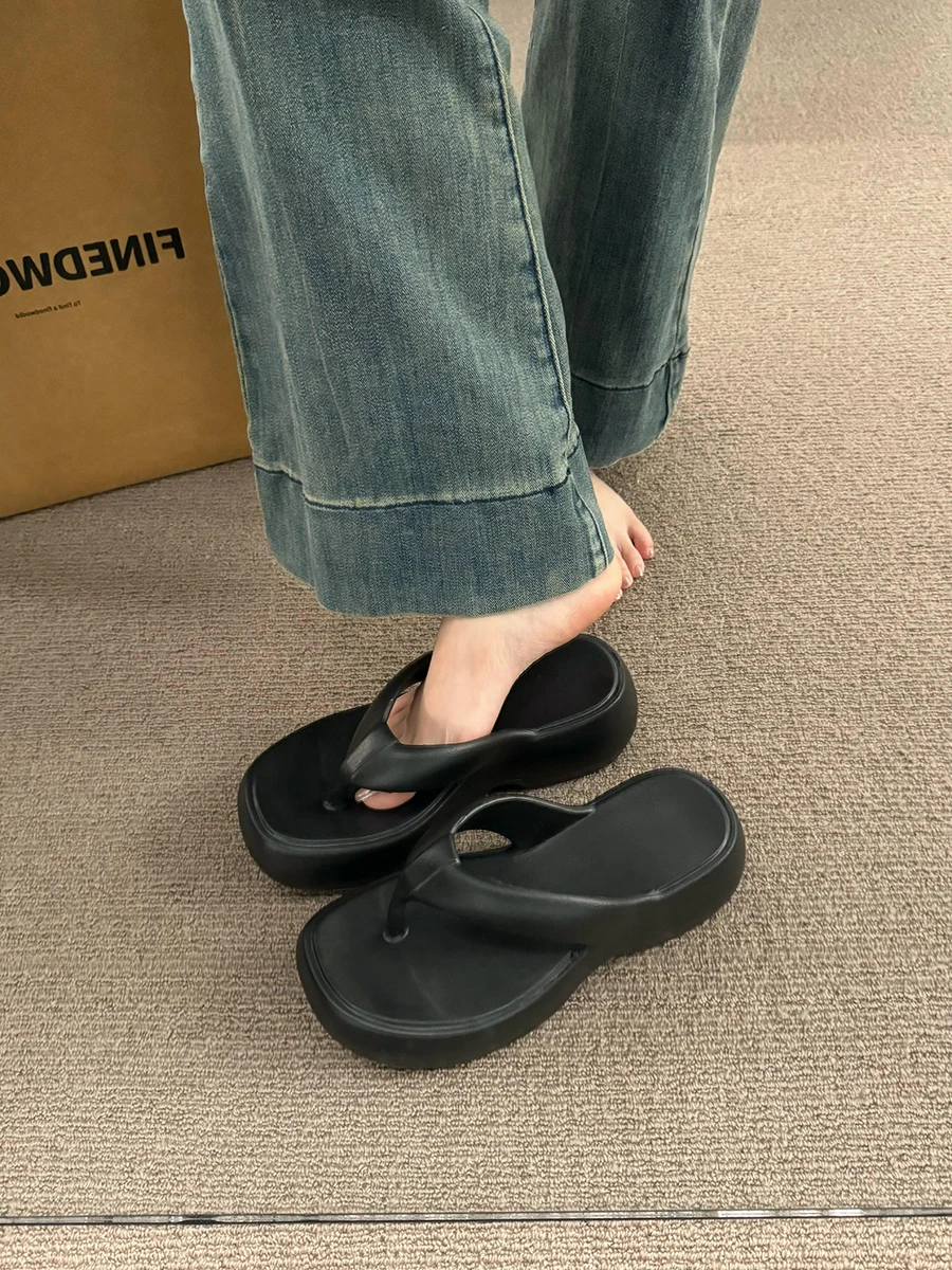 Casual Square Toe Women's Flip-flops Soft-soled Non-slip Heeld Sandals Unique Features Leisure Summer Popular Outdoor Slippers