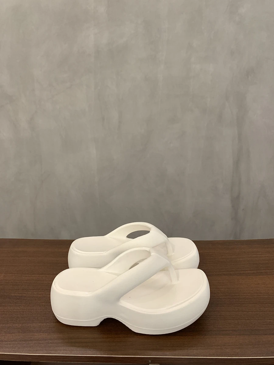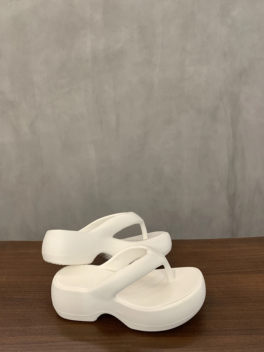 Color: WHITE, Shoe Size: 39-40 - Casual Square Toe Women's Flip-flops Soft-soled Non-slip Heeld Sandals Unique Features Leisure Summer Popular Outdoor Slippers