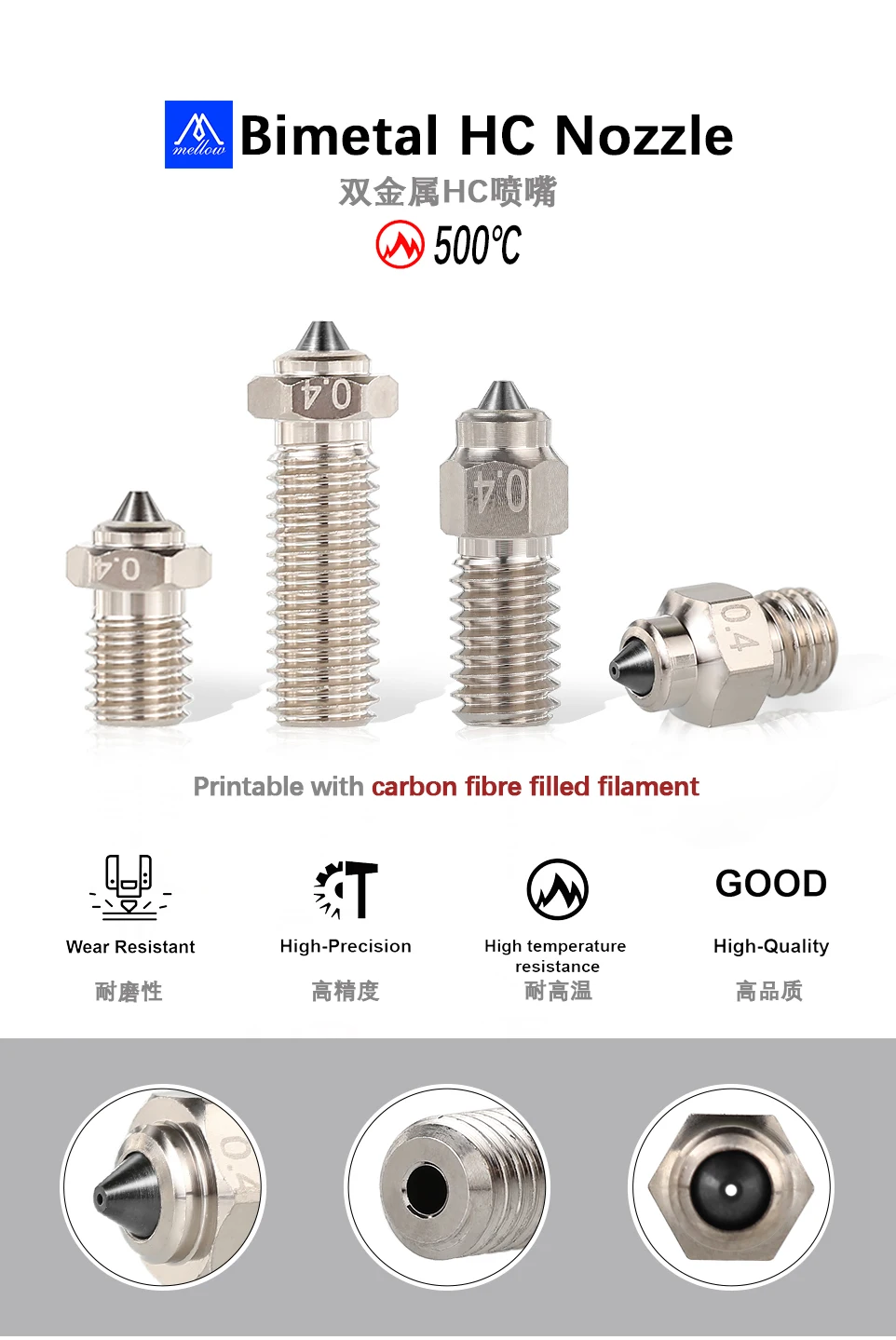 Explore the boundless possibilities of 3D printing with our HC copper nozzle, a perfect blend of precision and durability. Specifically designed for printing high-strength carbon fiber materials, this nozzle significantly enhances durability while ensuring excellent flow rates.