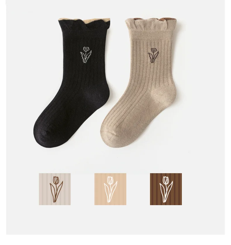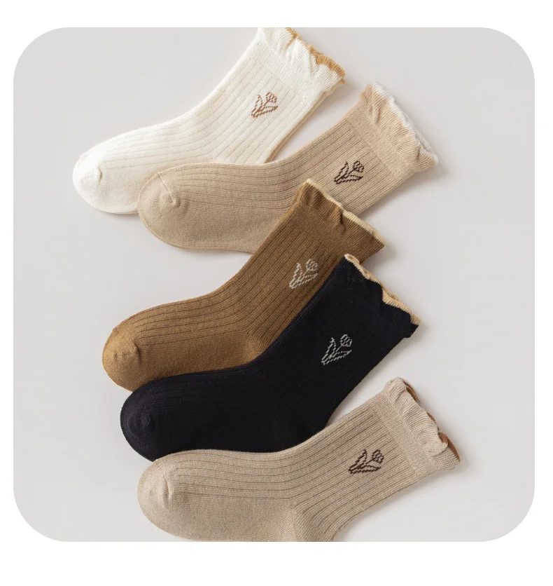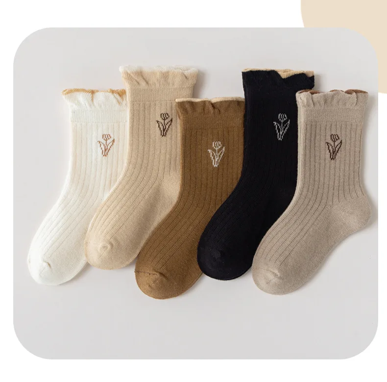 Color: WHITE, Size: 10-12T - 3-12Y Girls Socks Spring Autumn Sweet princess Ruffle Medium Socks Cotton Socks 5 Pairs