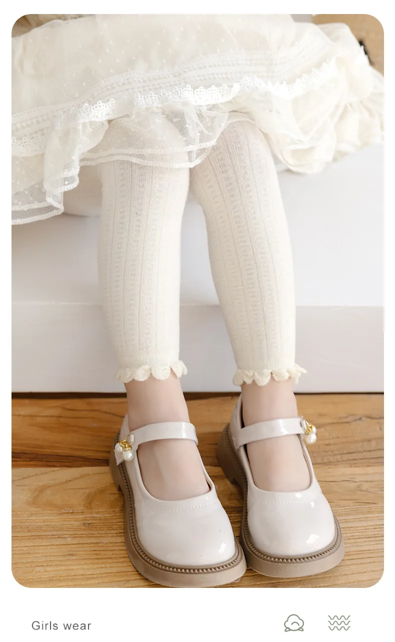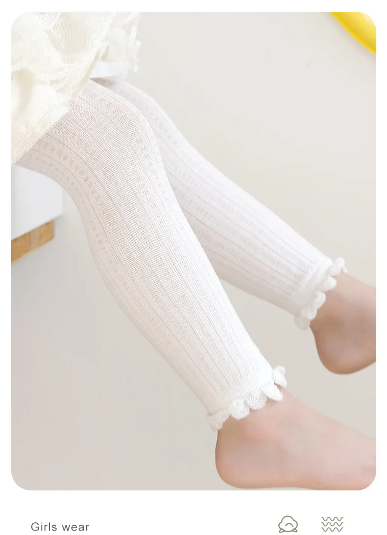 Color: WHITE, Size: 128, Ships From: CHINA - Summer Spring Mesh Baby Girls Stretch Leggings Cotton Solid Ruffle Edge Toddler Kids Pants