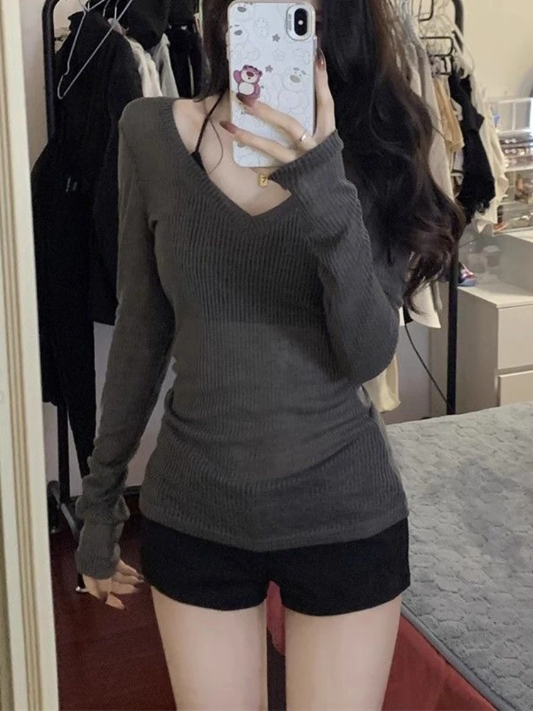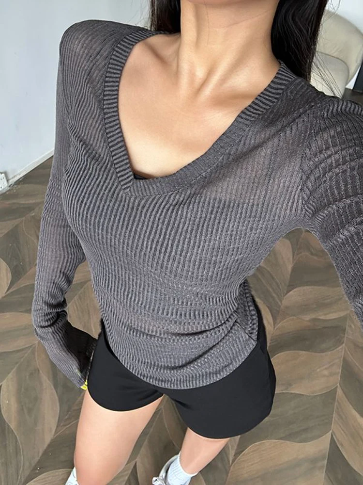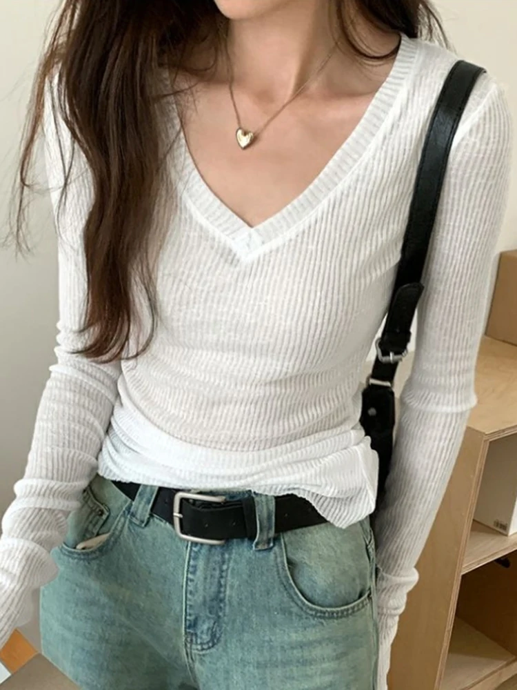 Color: WHITE, Size: L - Women Long Sleeve T Shirt Thin Perspective Summer Solid Slim Casual Shirts Female Pullovers Basic Tee Y2k Clothes Streetwear Top