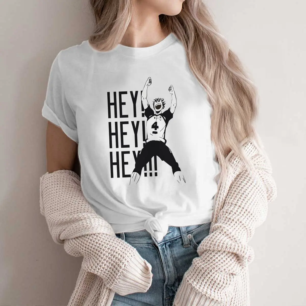 Color: WHITE, Size: M - Haikyuu Cartoon Anime Polyester TShirts Bokuto Kotaro Hey Hey Hey Print Men's T Shirt New Trend Clothing