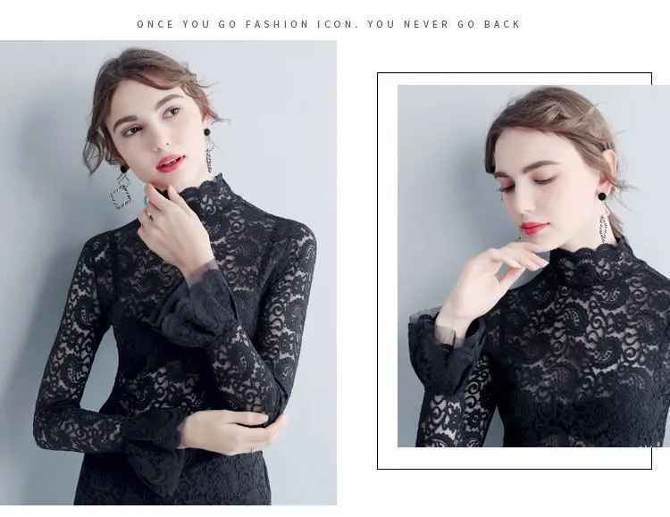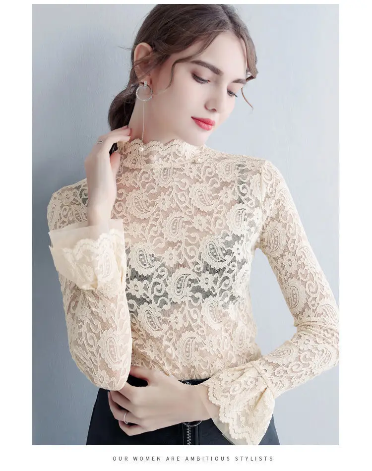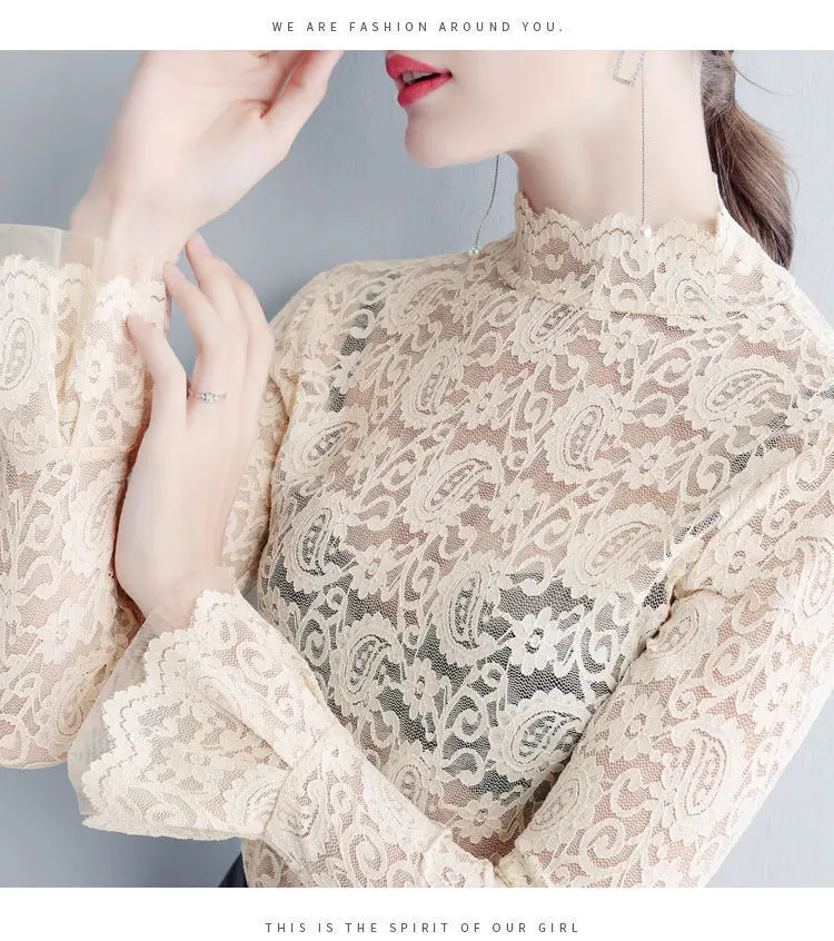 Color: WHITE, Size: M - Sexy Transparent Long Sleeve Top Women 2025 Fashion Autumn Winter Basic Lace Blouses White Black Hollow Blusas Mujer Oversized