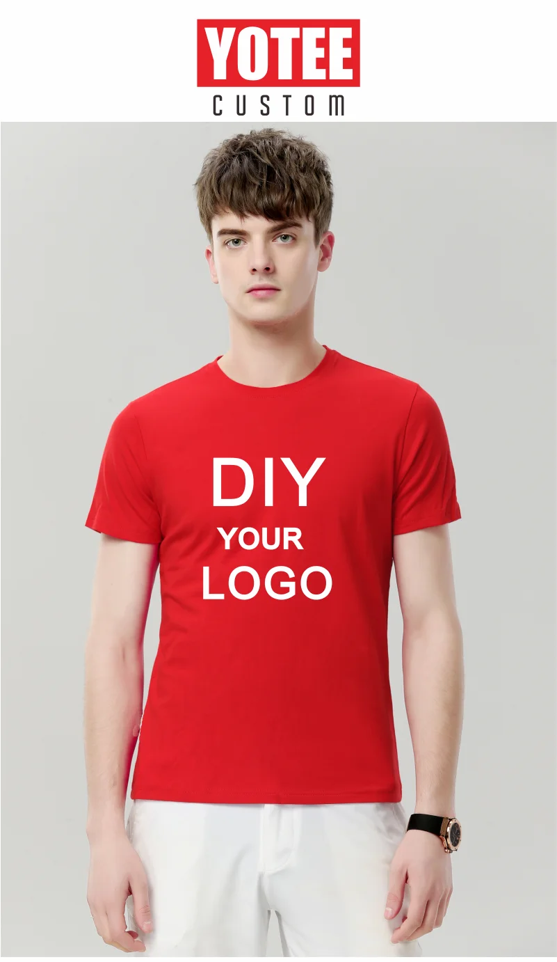 YOTEE Round Neck T-shirt Cotton Logo Customized Embroidery Personal Group Fashion T-shirt Logo Customization