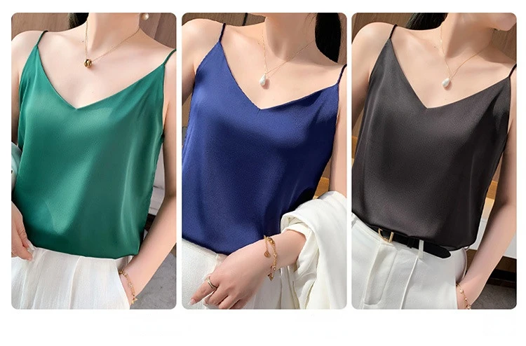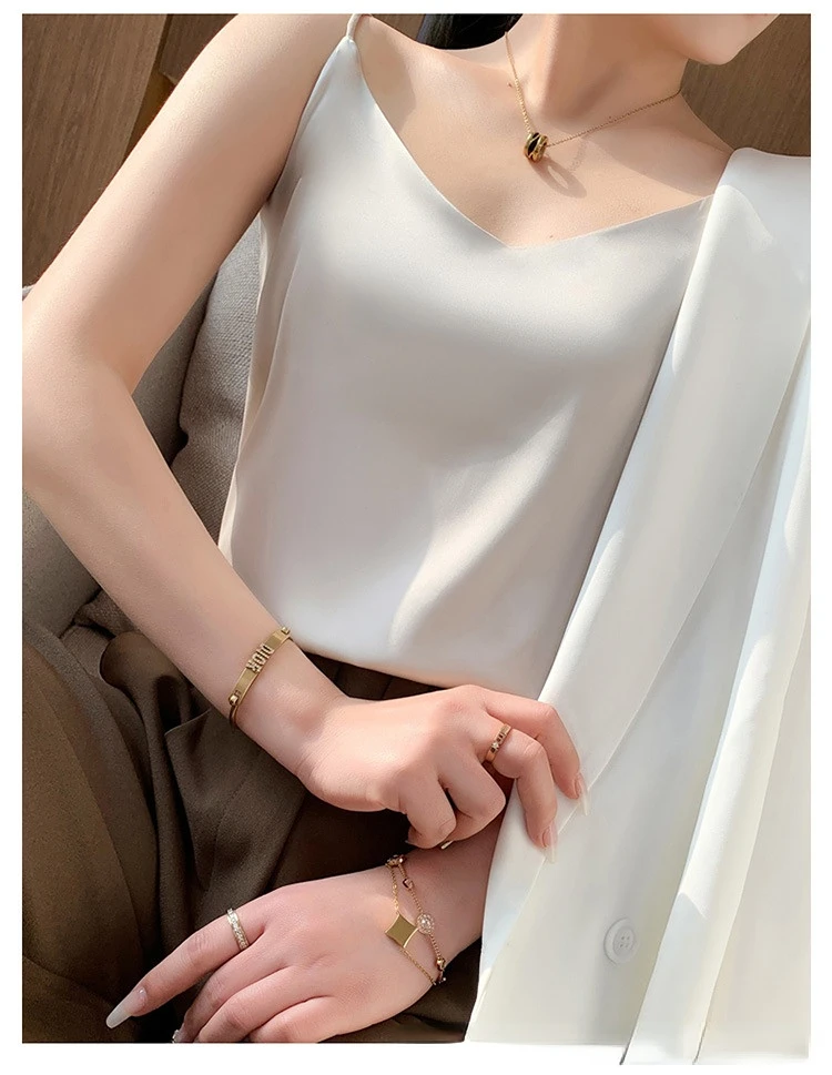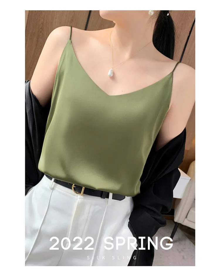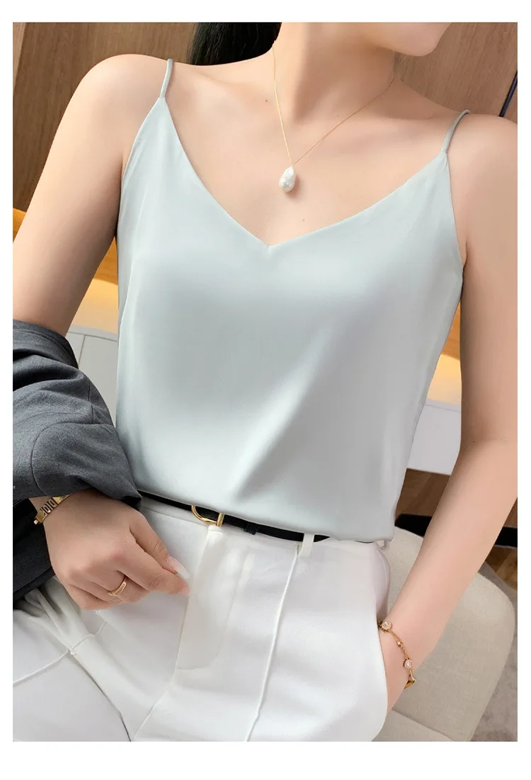 Color: WHITE, Size: XL - Fashion Silky Camisole Women's Inner With White Bottoming Satin Top Summer V-neck Thin Section