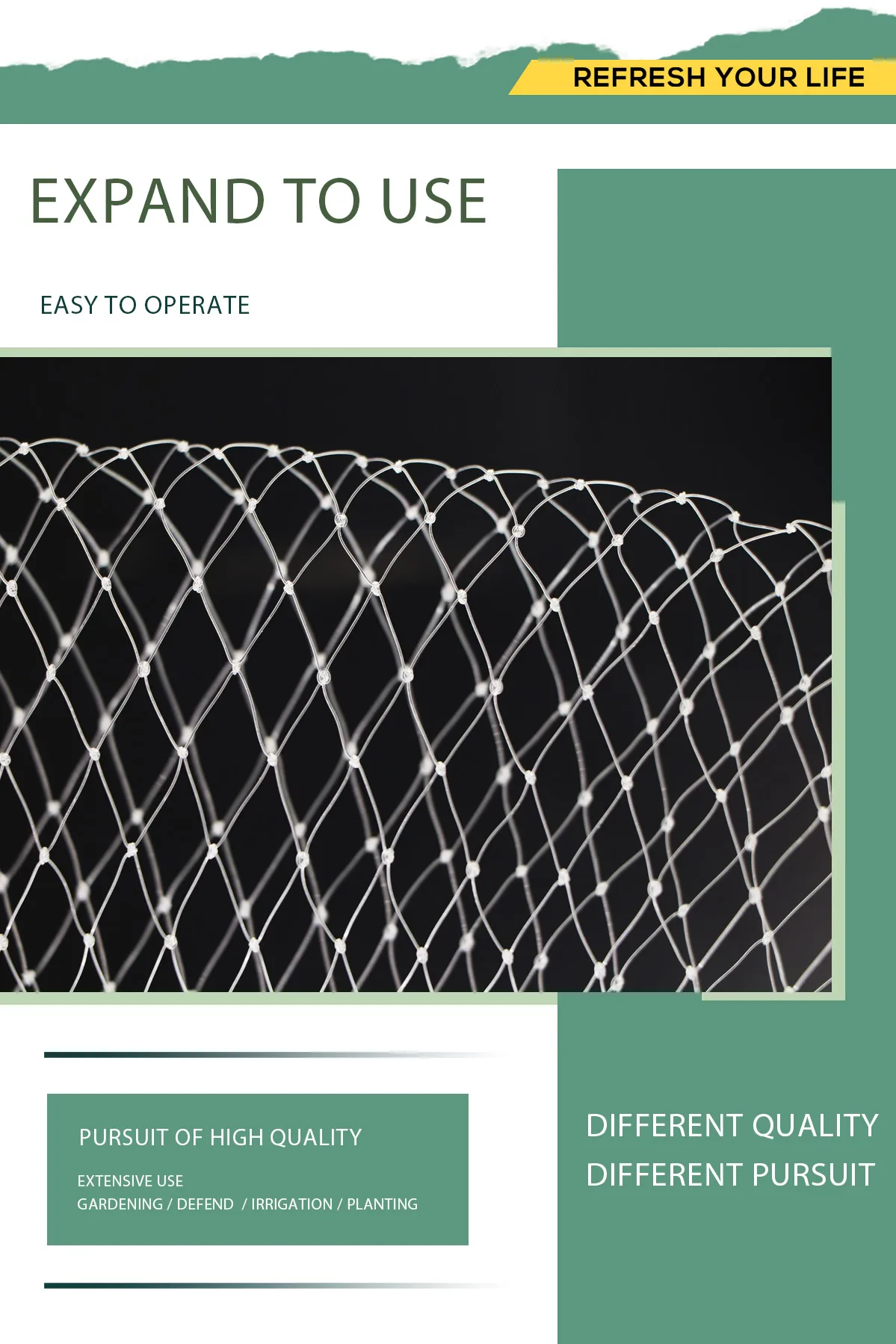 Knitted anti bird nets offer long-term protection for all types of crops and plants against all birds and predators. It creates bird-proof enclosures that allow all of the light and moisture to reach your crops. You can solve bird problems at your plant, office complex, warehouse, sports facility, or nearly anywhere easily and inexpensively. Lighter-weight Standard.