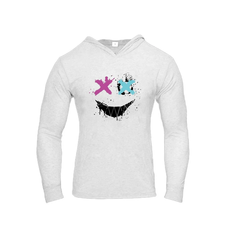 Color: WHITE, Size: XXL - Trendy Personality Funny XX Smile Face Hoodie Mens Slim Fit Running Long Sleeve Cotton Shirt Gym Training Fitness Hooded T-Shirt