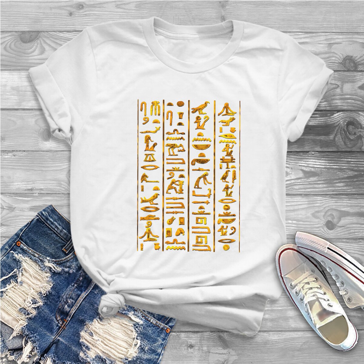 Color: WHITE, Size: XXXL - Ancient Egypt Culture Polyester TShirts Hieroglyphs Gold On Black Distinctive Women's T Shirt Funny Tops