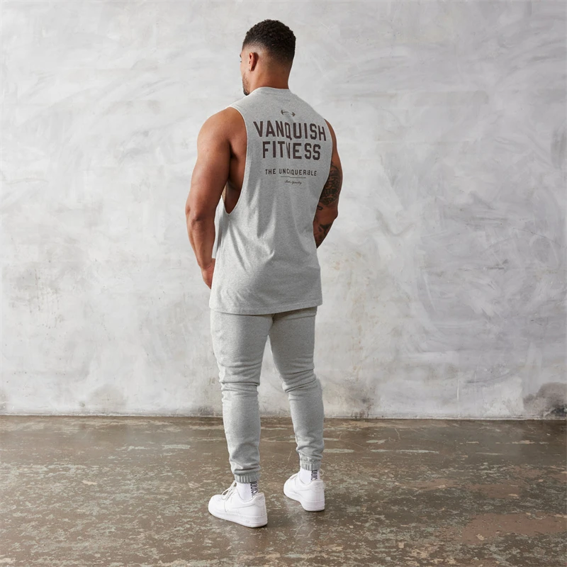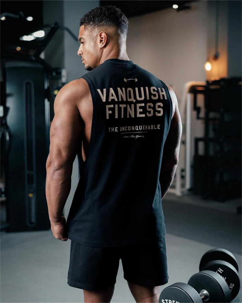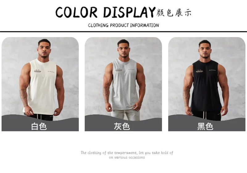 Color: WHITE, Size: XXXL - Gym exercise fitness sports men's vest cotton wide shoulder round neck sleeveless shirt slim casual men's wear