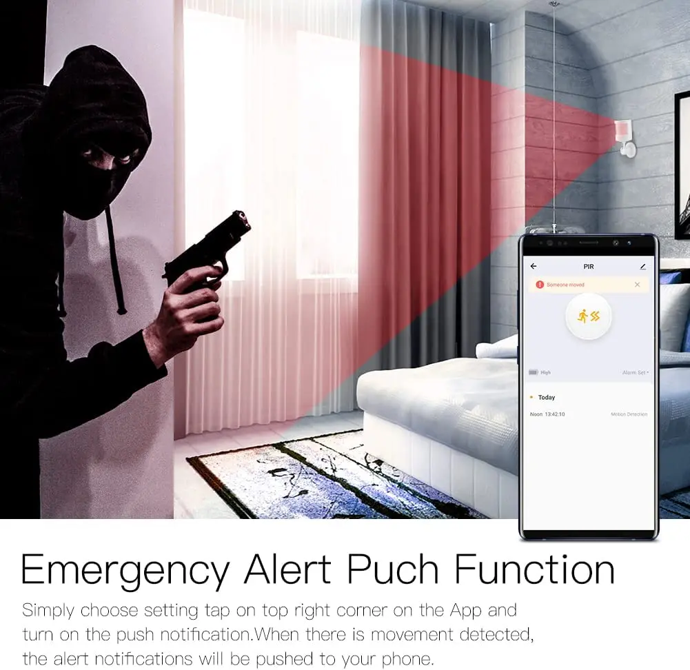 Simple download APP "Smart Life/Tuya Smart" in App Store or Google Play add the device to detect the human body movement. Home security in your hand all the time.