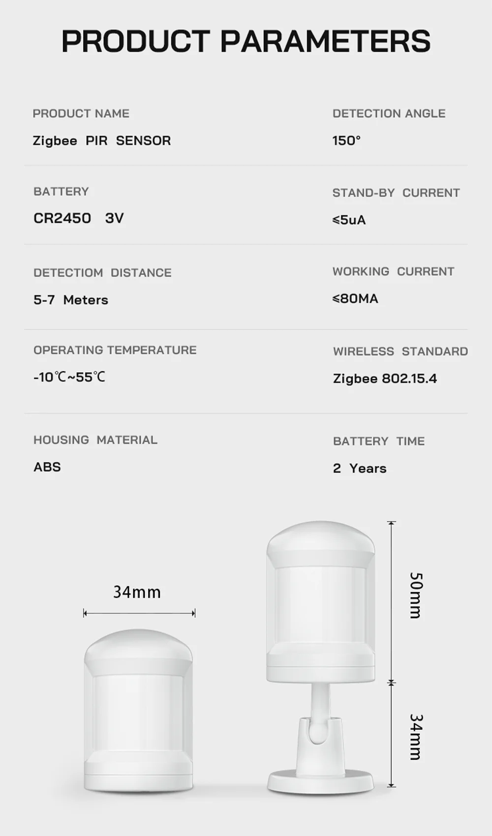 PIR Detect Distance: 5-7M Tuya ZigBee PIR