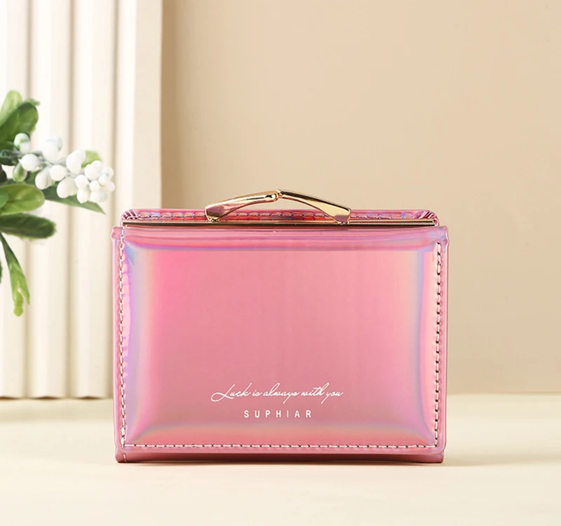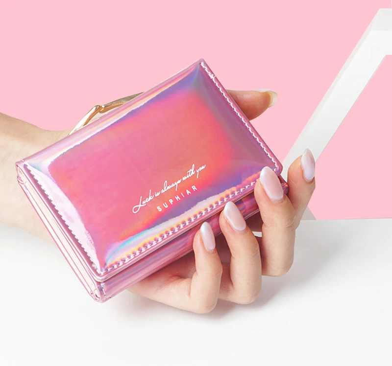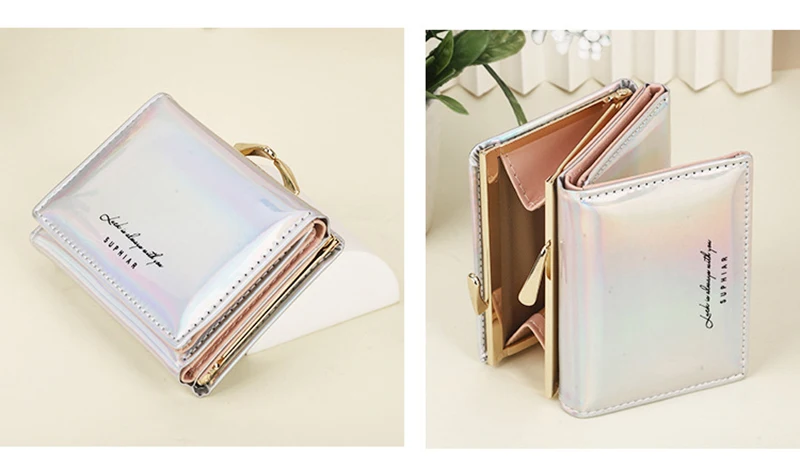 Color: WHITE - Women'sWallets Fashion Rainbow Credit Card Holder Purses with Coin Pocket for Women Portable Short PU Leather Cute Wallet