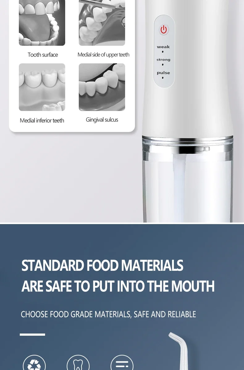 2.The oral irrigator is 3 modes available including soft, strong and pulse mode. By using it 2-3 times a day