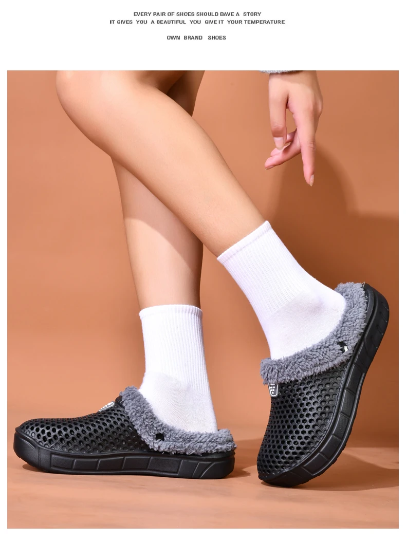 Color: wine red, Shoe Size: 46 - Couple Style Men's and Women's Cotton Slippers Winter Warm Plus Velvet Thickened Clogs Mule Shoes