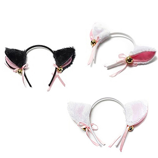 Cartoon Cat Fox Ears Headband with Bell Bow for Anime Cosplay Party Costume