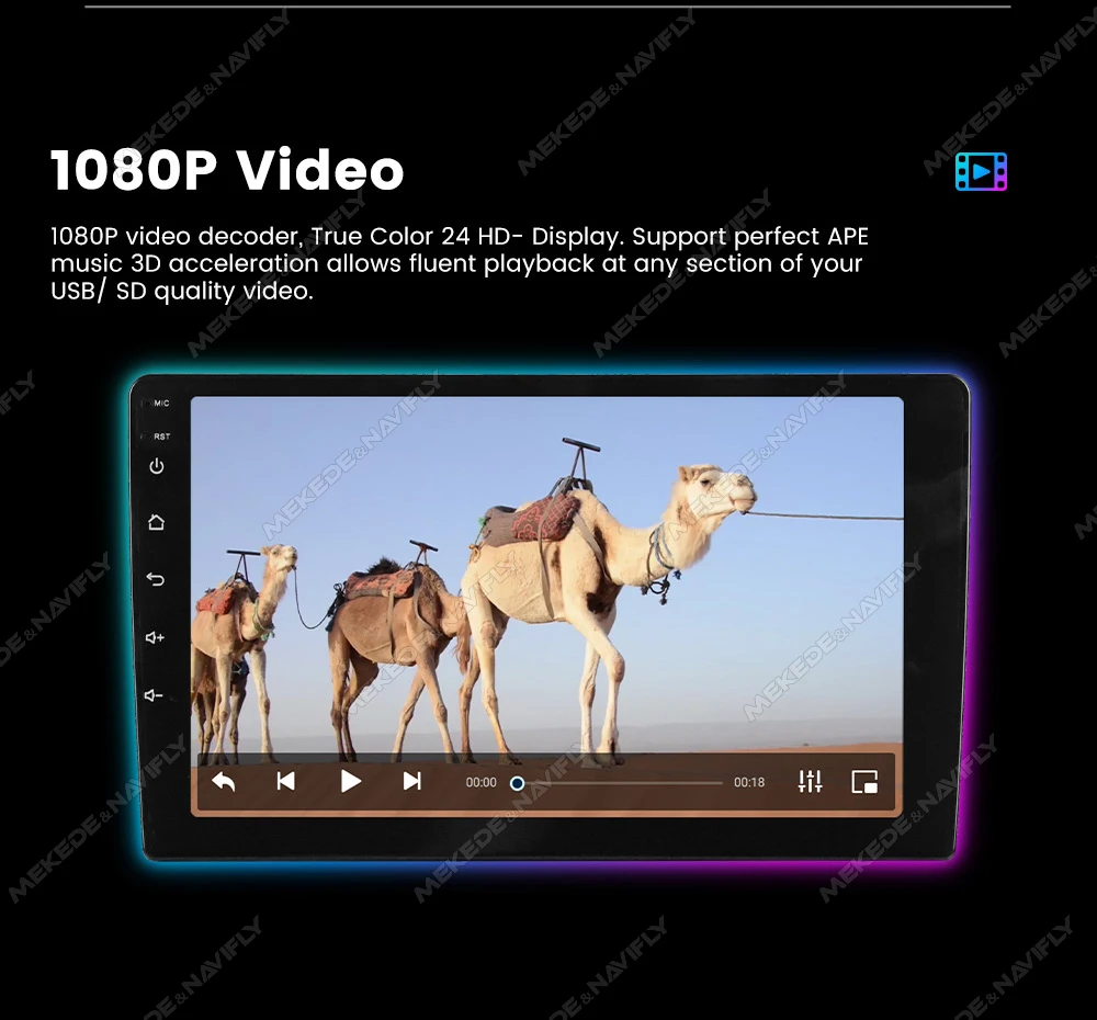 1080p video decoder, true color 24 HD display. Supports perfect APE music 3D acceleration, allowing smooth playback in any part of your B/SD quality video.