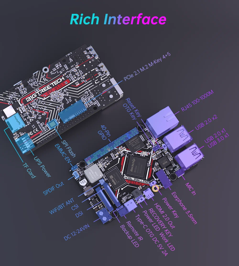 Rockchip RK3566 Quad-core 64-bit 1.8 GHz:Delivers Smooth Klipper Operation
