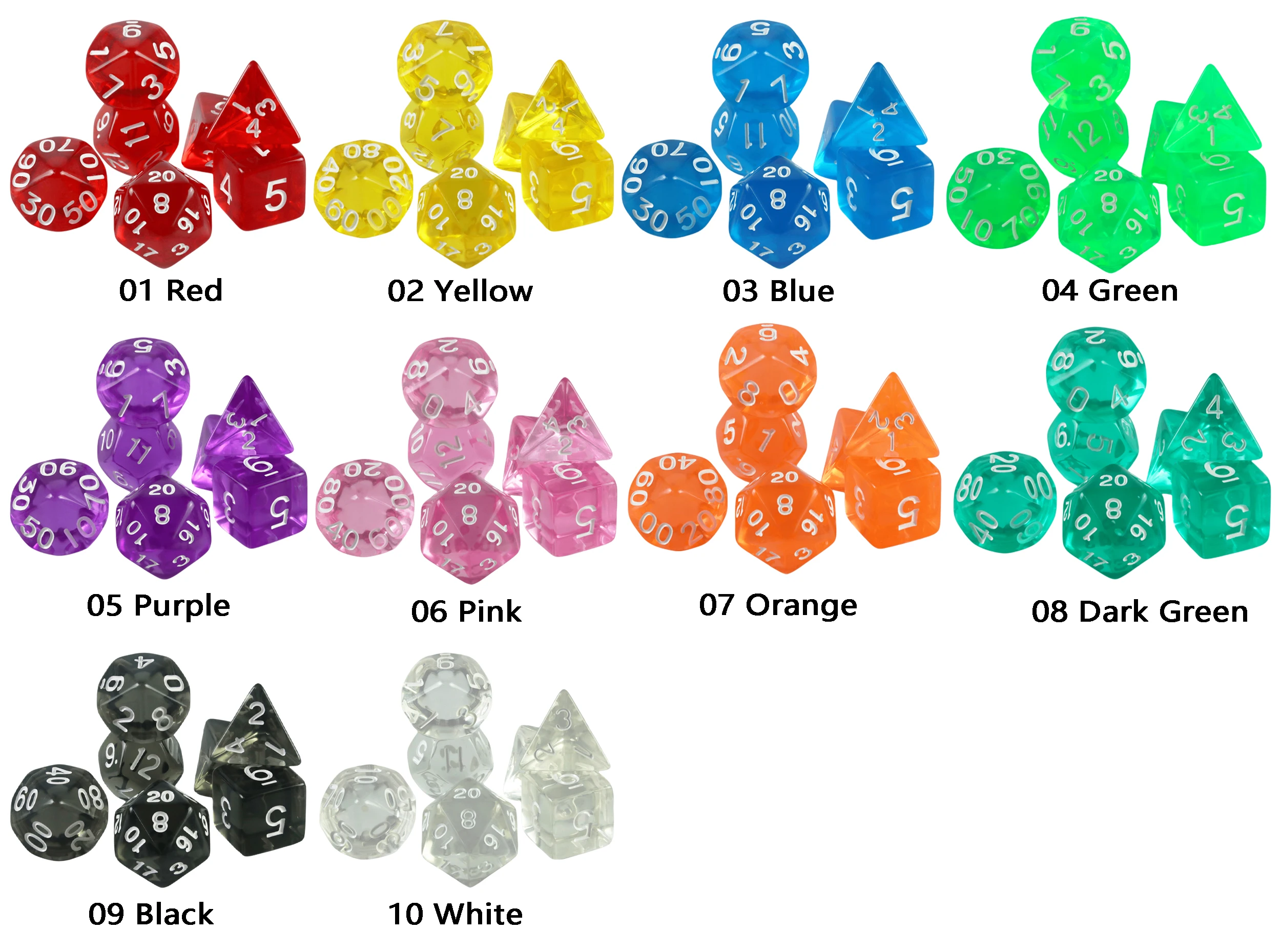Color: Yellow - High Quality 7 Pcs/set Transparent Crystal Digital Polyhedral Dice Sets D4-D20 , for DNDGame Dados Rpg Board Game