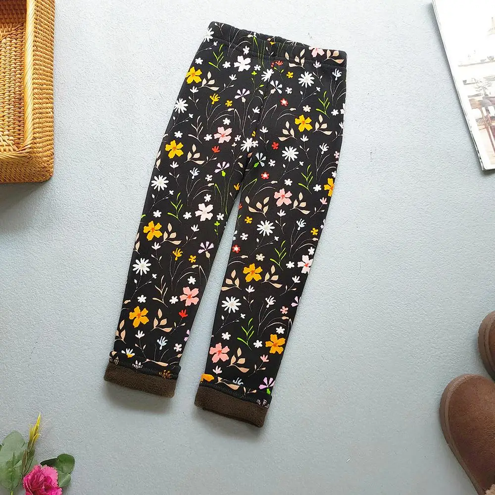 Color: Yellow, Kid Size: 11 - Autumn Winter Print Flowers Thick Warm Kids Toddler Baby Girls Leggings Children's Pants