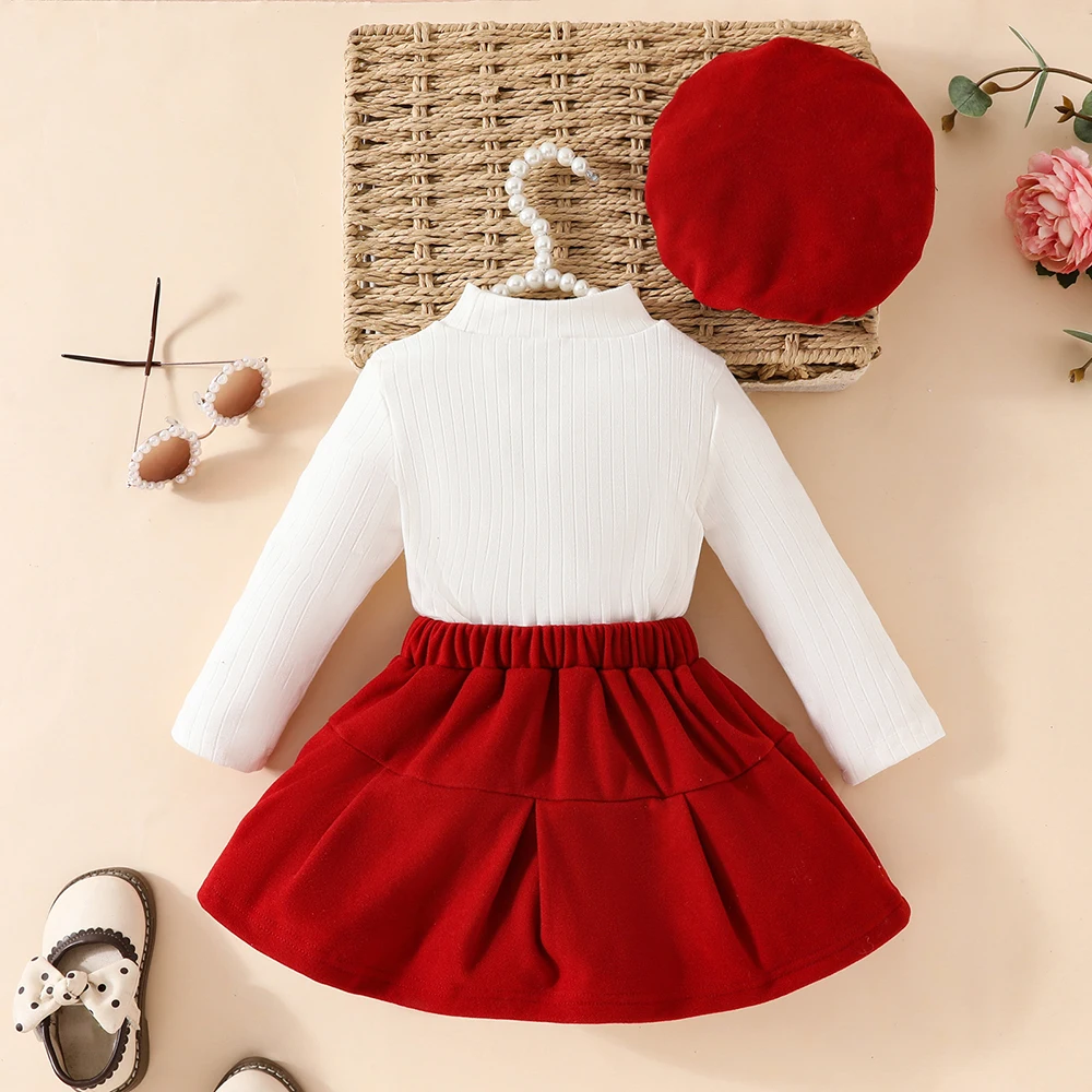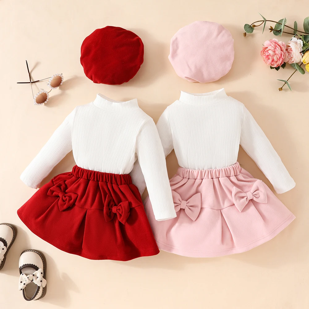 Color: Yellow, Kid Size: 4T - Baby Girls Clothes New Year Set 0-3Y Long Sleeve Big Bow Top Irregular Skirt and Beret 3Pcs Toddler Christmas Clothes