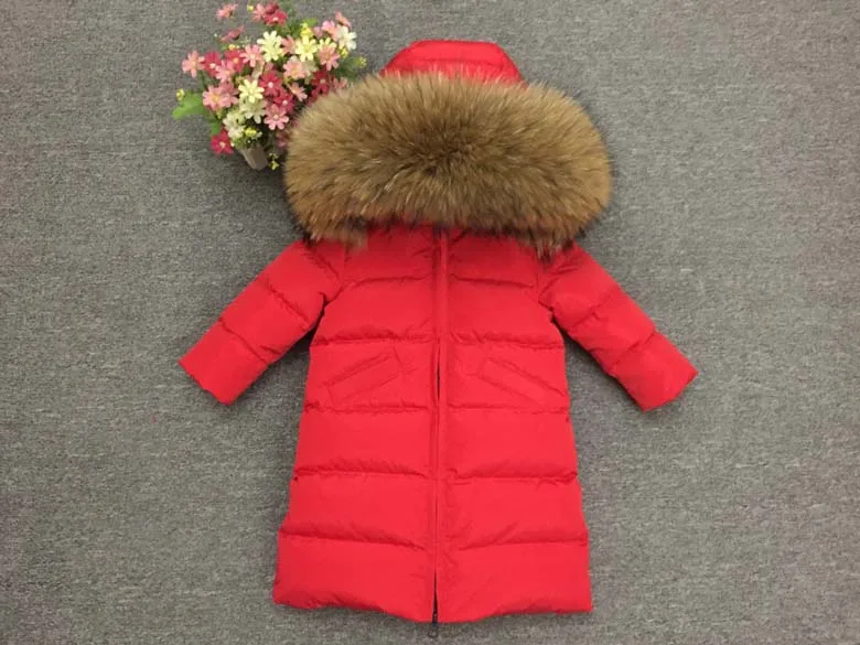 Color: Yellow, Kid Size: 4T - Children Girl boy Winter real fur thickened down jackets 90 down Long Coat jacket overcoat baby kids clothing -30 outwear ws1245