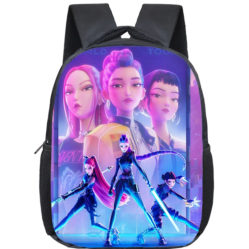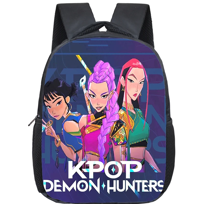 Color: Yellow - KPop Demon Hunters School Bags 12inch Lightweight Children Backpack Girls Boys Orthopedic Kids Book Bags Back To School Mochilas
