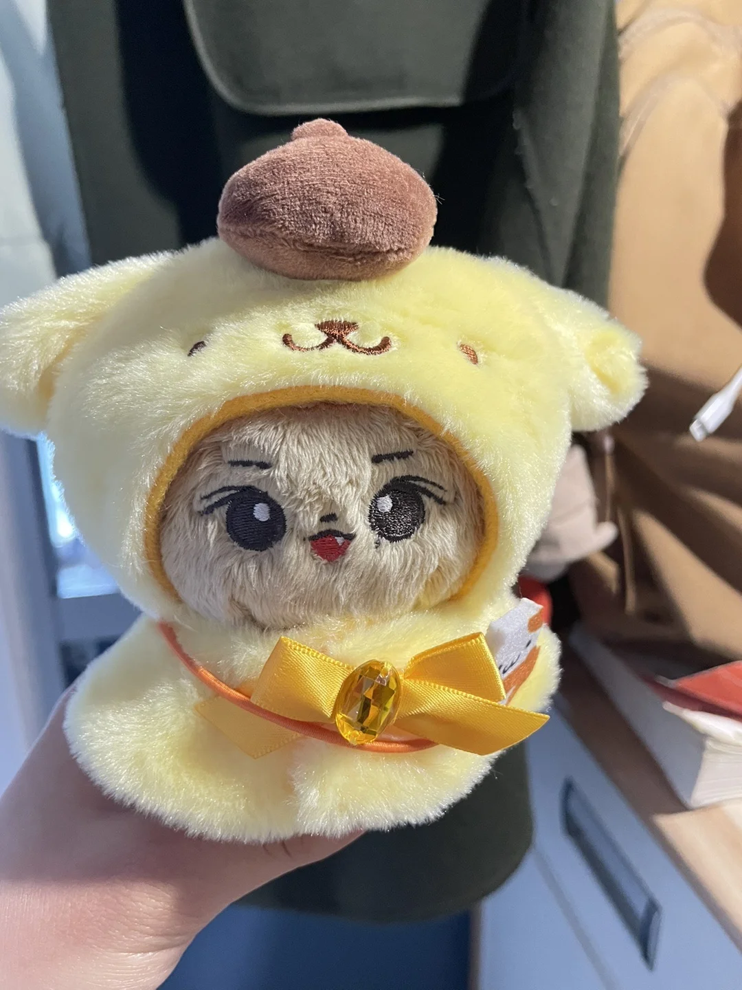 Color: Yellow - Labubu Sanrio Cape Skirt Suit Sitting Party Hello Kitty Kuromi Clothes Monsters Vinyl Labubu Outfit Clothing Hat Accessory Gift
