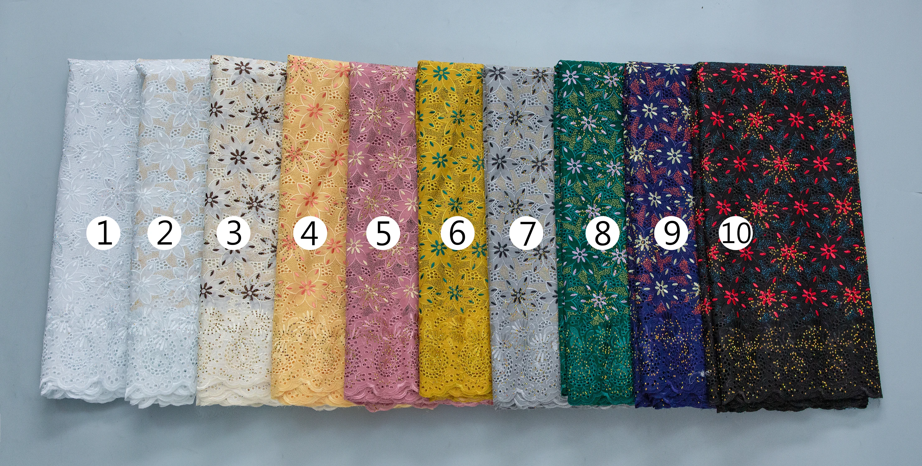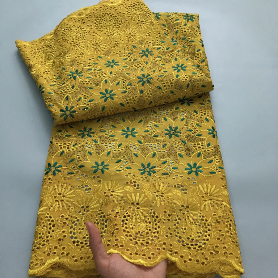 Color: Yellow, length: 5 yards, Width: 120cm - Black Swiss Lace Fabric High Quality 2025 Embroidered Rhinestones Nigerian Cotton Lace Fabric African Dress for Women Sew A4212