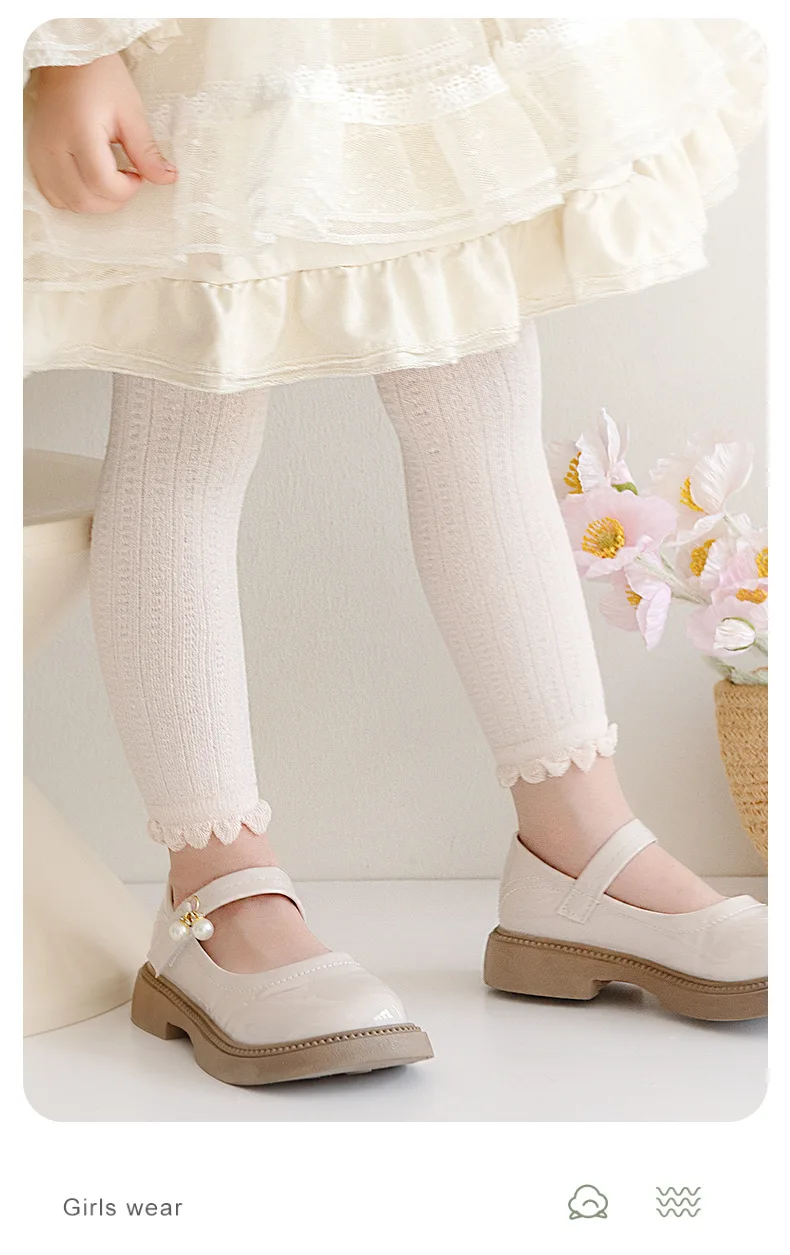 Color: Yellow, Size: 128, Ships From: CHINA - Summer Spring Mesh Baby Girls Stretch Leggings Cotton Solid Ruffle Edge Toddler Kids Pants