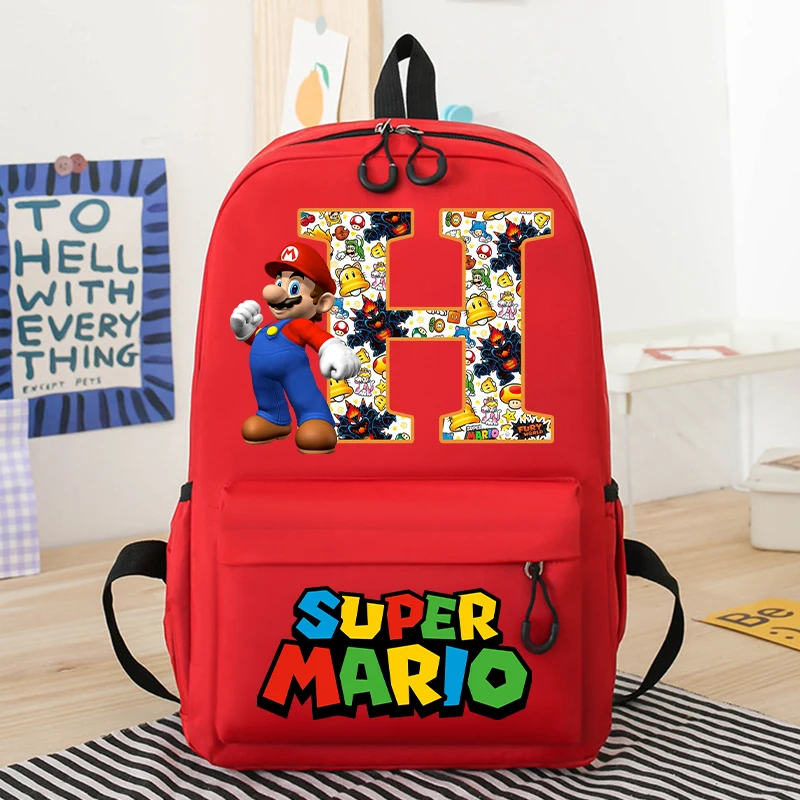 Color: Yellow, Size: >40cm - New Super Mario Bro School Bag Cartoon Letter Printed Children Backpack Boys Girls School Backpacks Children's Birthday Gifts
