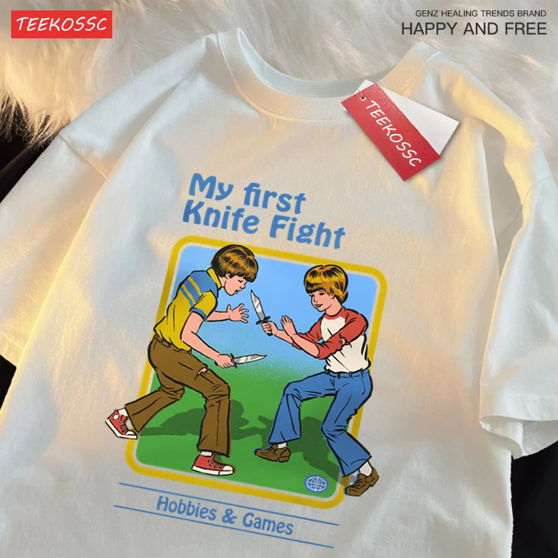 Color: Yellow, Size: XL - My First Knife Fight Hobbies Games Print Tshirts Men Women Soft Short Sleeve Summer Casual Cotton Oversized Loose Street T Shirt