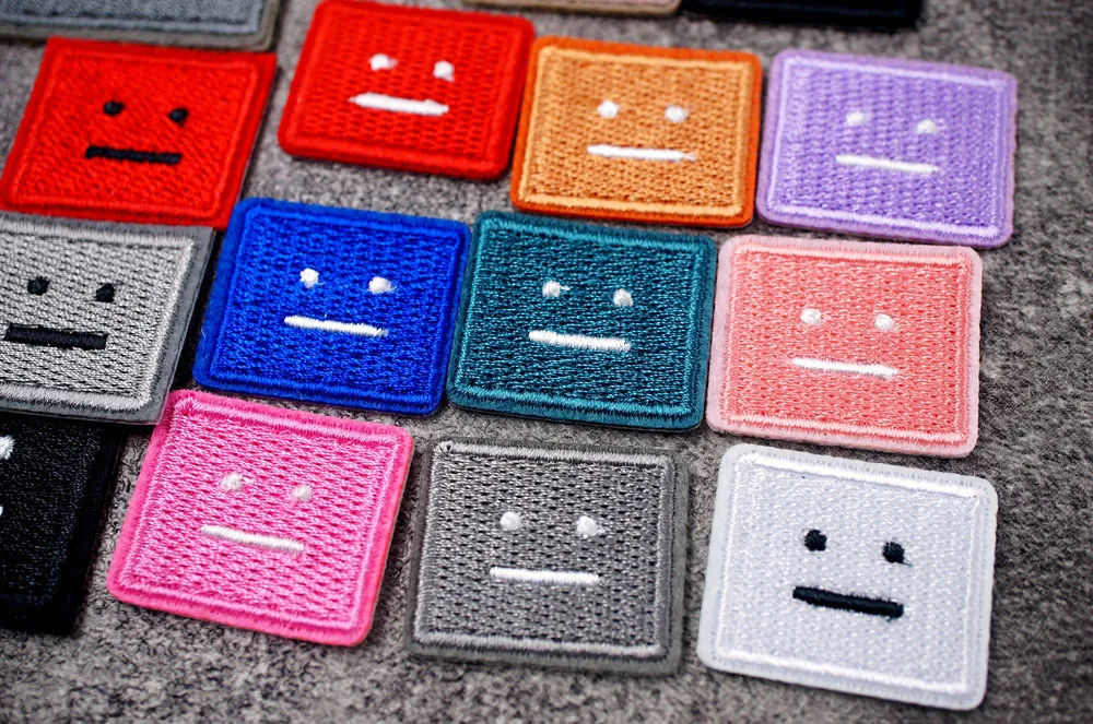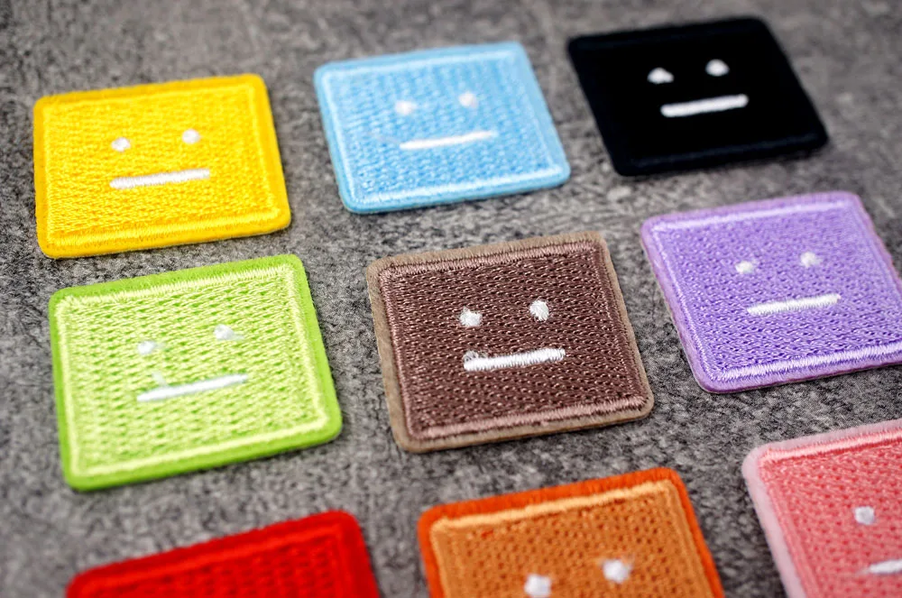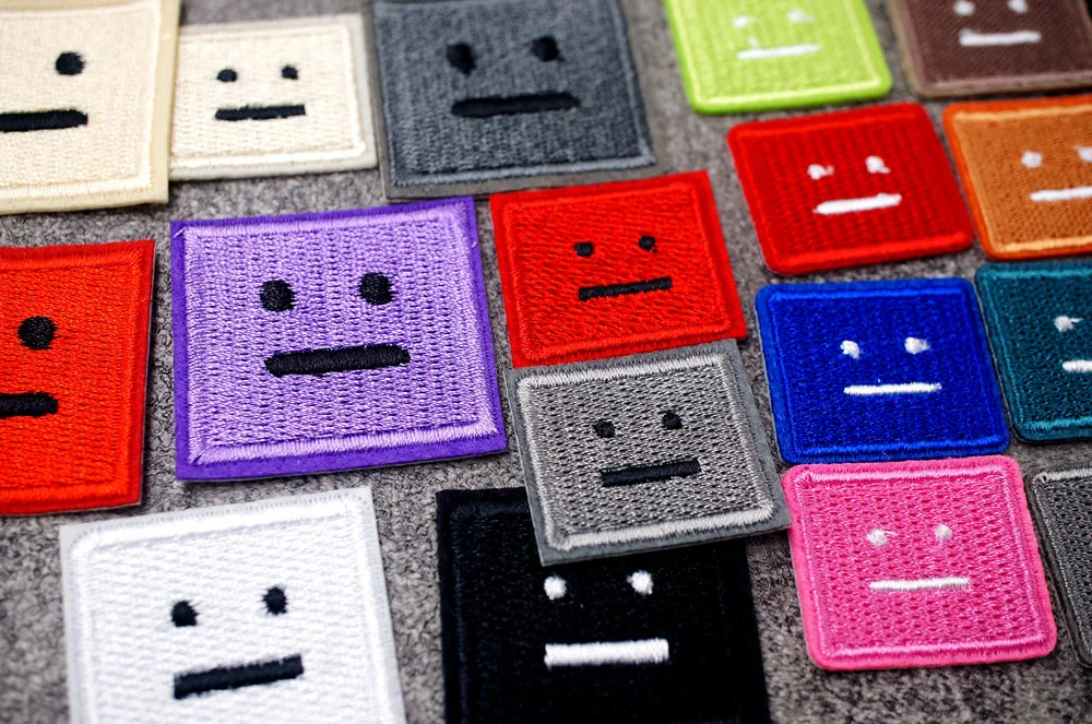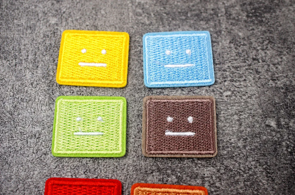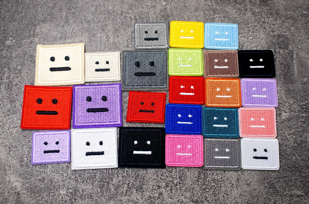 Color: Yellow - Square Expression Embroidered Applique Patches Fabric Garment Apparel Clothing Accessories Embroidery Badges Pink Black White
