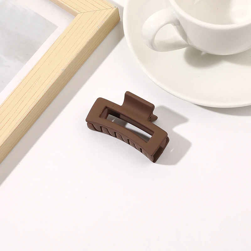 Color: Yellow - Wholesale 4.5cm Frosted Matte Mini Grab Clip Crab Hair Clips Women Hollow Square Hair Catches Ponytail Clip Bangs Clip Top Clips