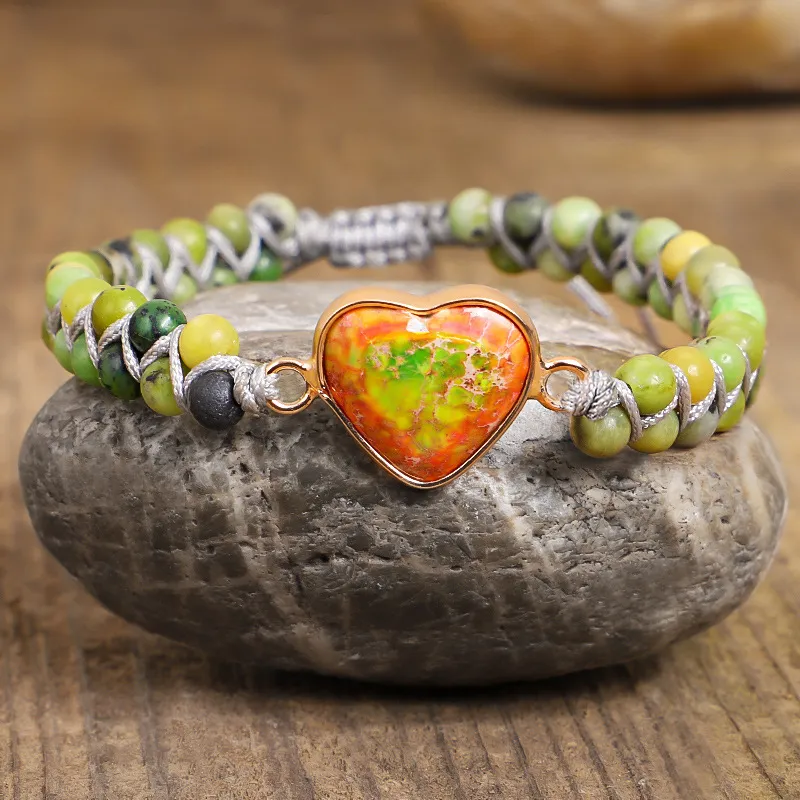 Colorful Heart Emperor Hand Braided Double Winding Stone Bracelet: A Vibrant and Meaningful Accessory
