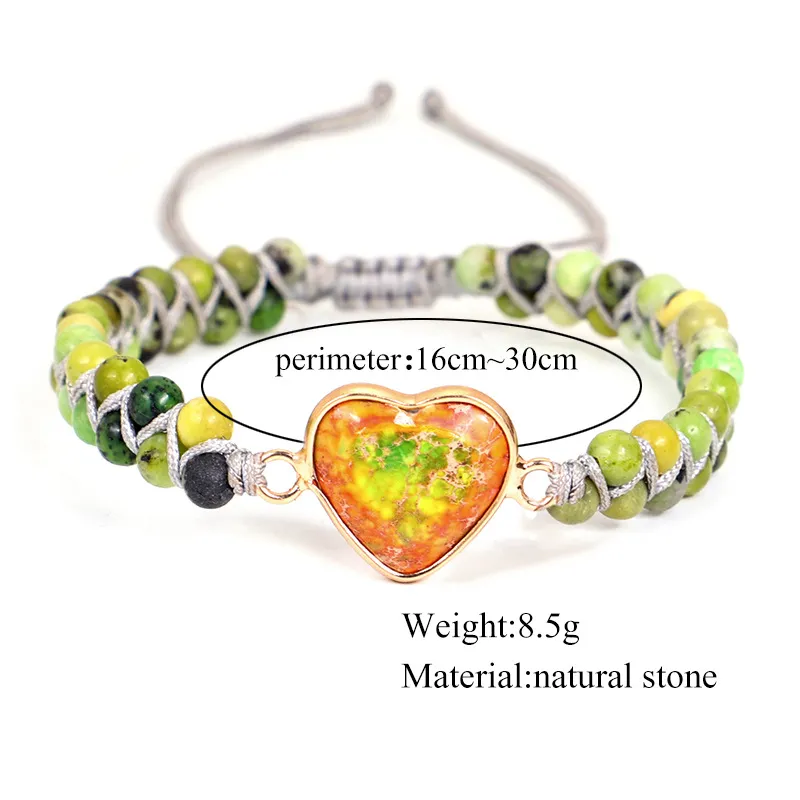 Introducing the Colorful Heart Emperor Hand Braided Double Winding Stone Bracelet, a stunning and unique piece that blends vibrant colors, symbolic meaning, and crafted artistry into one beautiful accessory. Featuring a heart-shaped pendant and stone beads with intricate hand-braided detailing, this bracelet offers both aesthetic charm and spiritual significance. Whether you’re looking to add a pop of color to your everyday outfits or seeking a meaningful accessory for spiritual growth and emotional healing, this bracelet is a perfect choice.The heart pendant symbolizes love, compassion, and connection, while the stone beads provide a touch of energy and healing properties. The double winding braided design ensures a secure and comfortable fit, making this bracelet a stylish and spiritual addition to any jewelry collection.