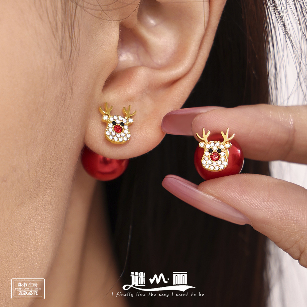 The earrings feature Christmas tree and elk designs adorned with vibrant zircon stones, adding a touch of whimsy and sparkle that’s perfect for the holiday season.