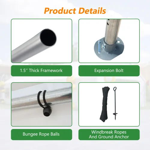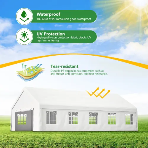 - The party tent frame is made of high-quality materials, rust-proof and corrosion-resistant, and can provide strong support. The tarpaulin uses high-quality PE fabric, which is waterproof and UV-resistant.
