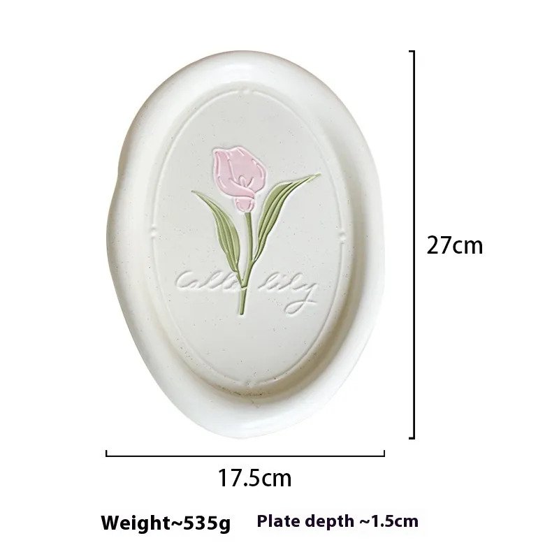 Common Calla Tulip French Relief Ceramic Plate Tableware