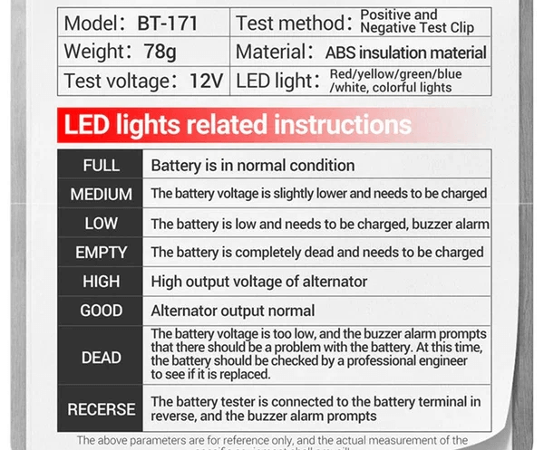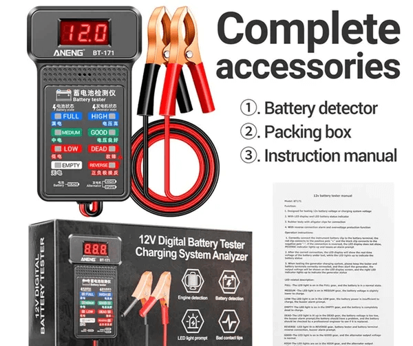 El comprobador de batería de automóvil de 12 V tiene la función de prueba rápida de batería y la función de análisis de múltiples datos. Detección rápida, datos precisos.