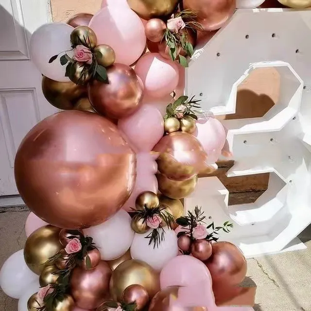 Conjunto de cadena de globos de oro rosa retro para decoración de fiesta de cumpleaños