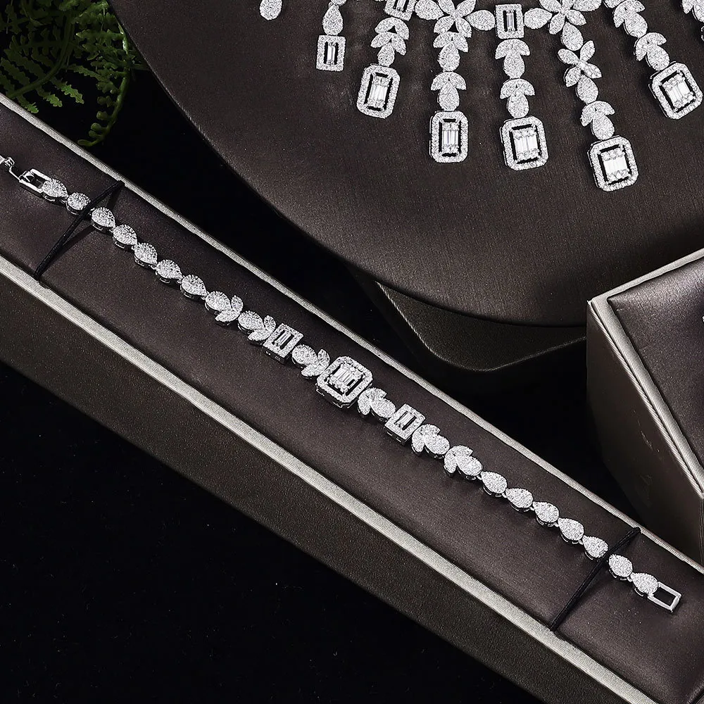 Conjunto de collar, aretes, pulsera y anillo de circón: La colección definitiva de joyas