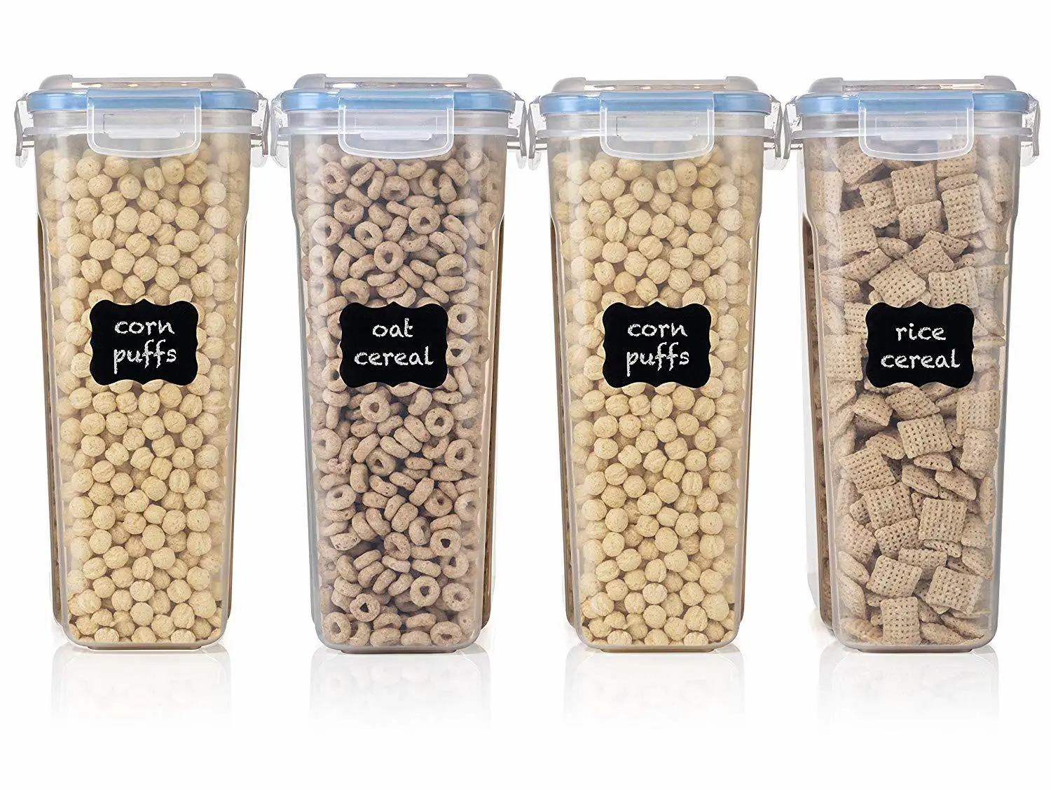 4-sided locking system with silicone seal. Durable constructionContainer holds kitchen staples like flour, sugar, rice, nuts, beans, snack, food, cereal, coffee, or tea