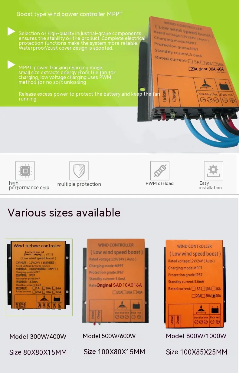 Aproveche todo el potencial de la energía eólica con el controlador de impulso para turbinas eólicas MPPT, diseñado para optimizar el rendimiento de turbinas eólicas pequeñas y medianas. Utilizando la tecnología de seguimiento del punto de máxima potencia (MPPT), este controlador avanzado garantiza que su turbina eólica funcione con la máxima eficiencia, incluso en condiciones de viento fluctuantes. Ideal para sistemas fuera de la red, instalaciones remotas y proyectos de energía sostenible en toda Nueva Zelanda, el controlador MPPT Boost le ayuda a lograr la máxima producción de energía, una carga eficiente de la batería y estabilidad del sistema en todas las condiciones climáticas. Características principales del controlador MPPT Boost para turbinas eólicas 1. Tecnología MPPT avanzada para máxima eficiencia