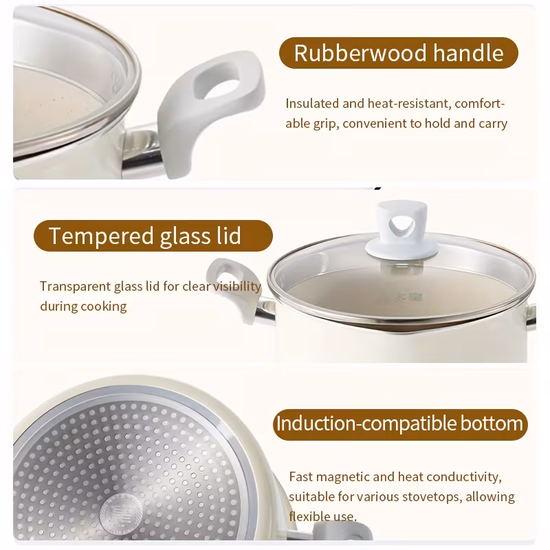 Designed for induction, gas, ceramic, halogen, electric, and glass cooktops.